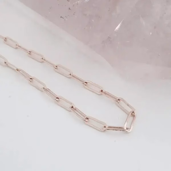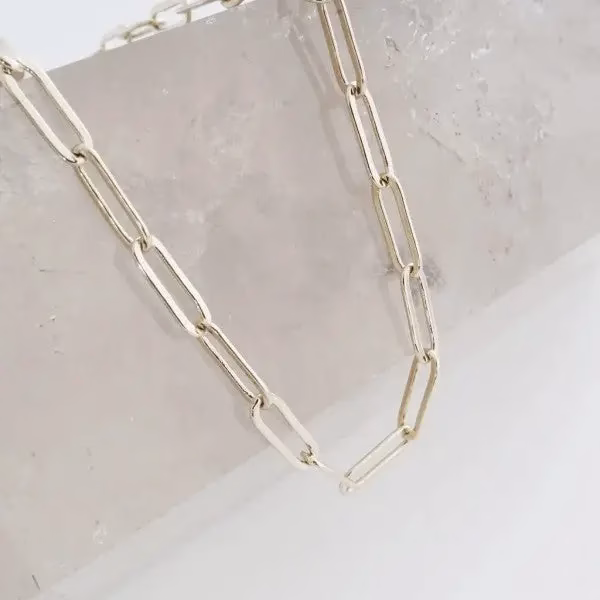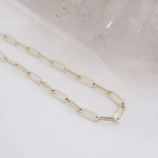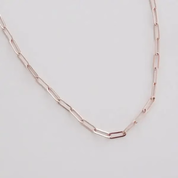 A fashion forward, dainty paperclip link chain that adds just the right amount of that extra special something. This is our “big sister” version of our Olivia Necklace . Effortless and easy to wear, layer, and style. Measures: 22″ long and fully adjustable.