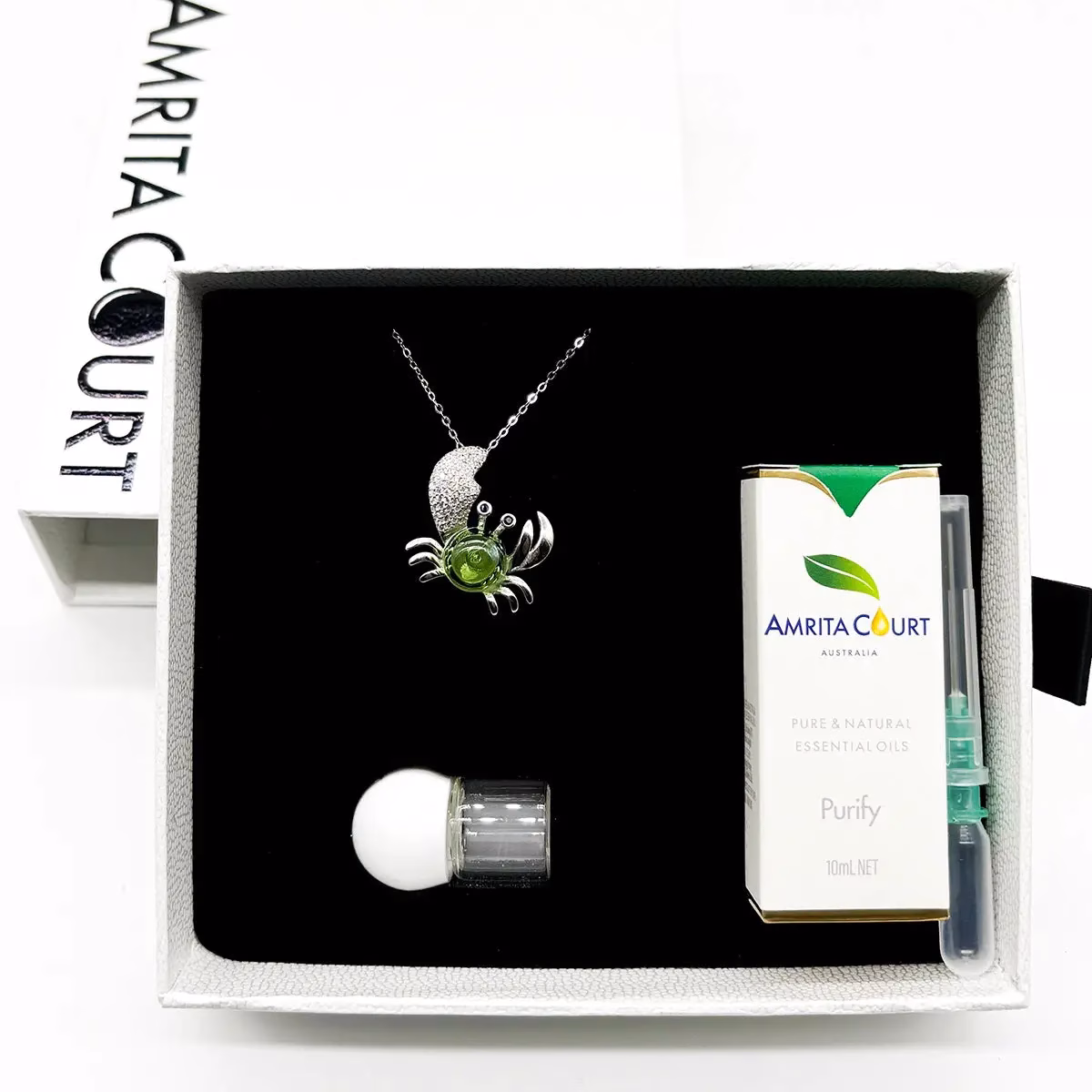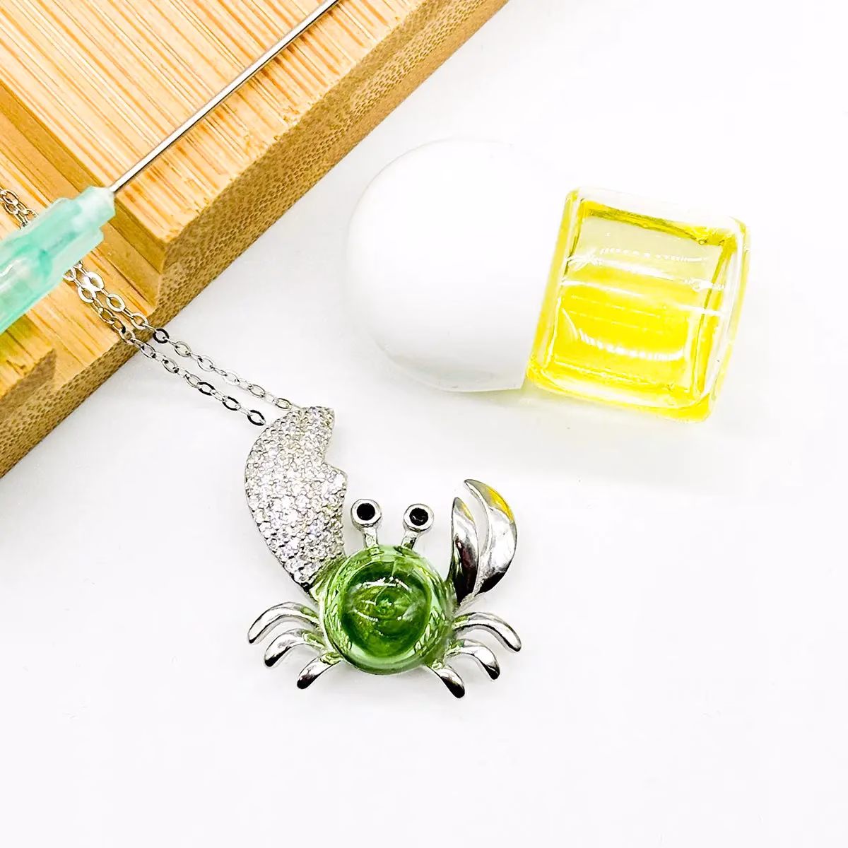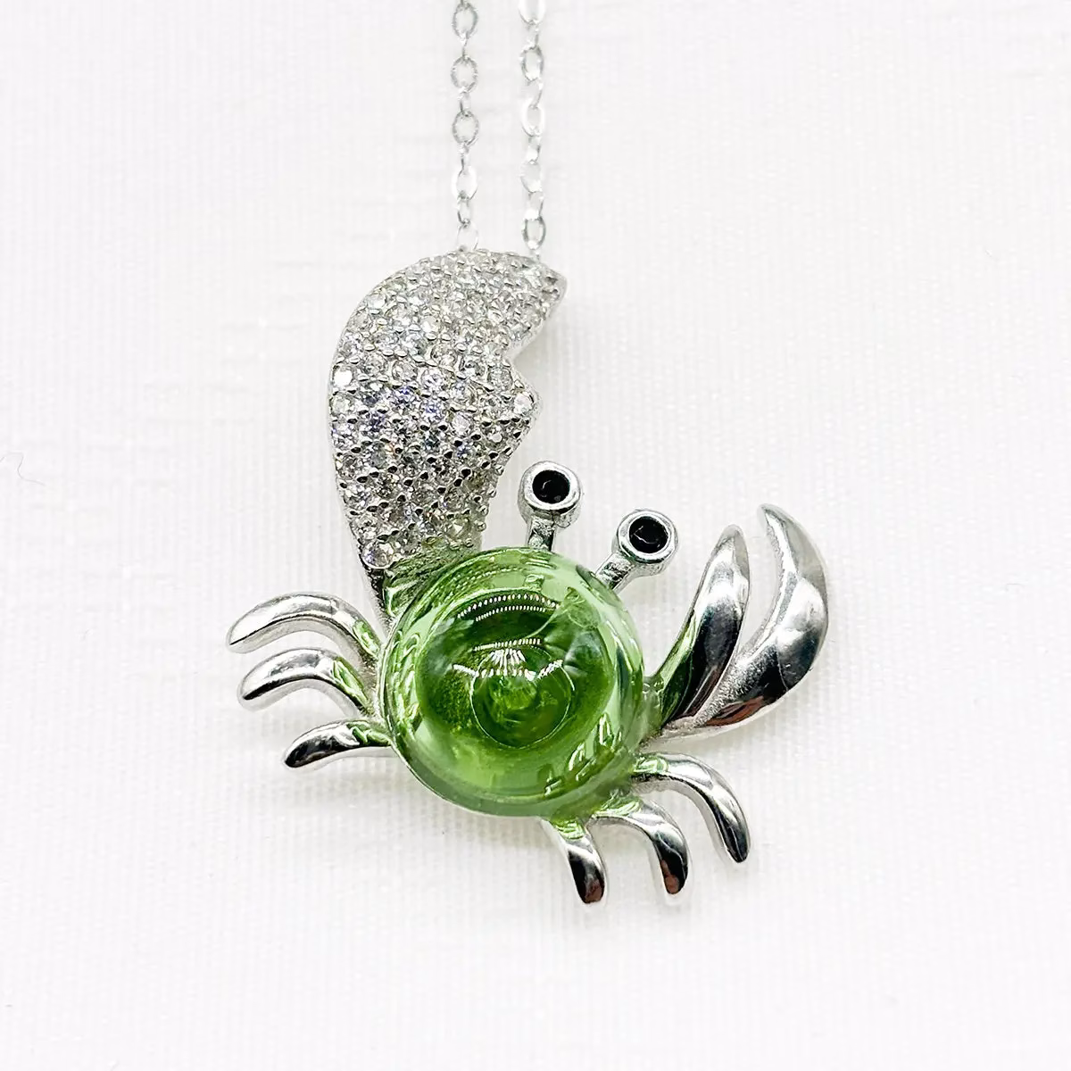 Elevate your style with our stunning new King Crab Aroma Necklace with Lime ball, a harmonious blend of exquisite design and timeless aroma. Crafted with care, the pendant and chain gleam are purely Sterling silver (925 silver) adorned with beautiful white cubic zirconia stones, while the Murano glass pieces are meticulously hand-blown.