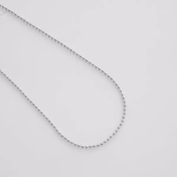 An effortlessly cool and easy to layer ball chain necklace. Wear it solo or layer it alongside your favorite necklaces for extra texture. Measures 18″ with a 2mm chain.